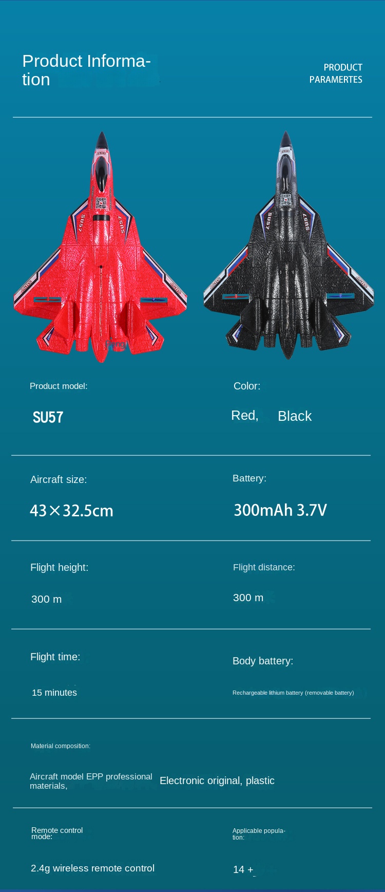 3.Imitates classic fighter SU-57, domineering appearance, highly restored.
