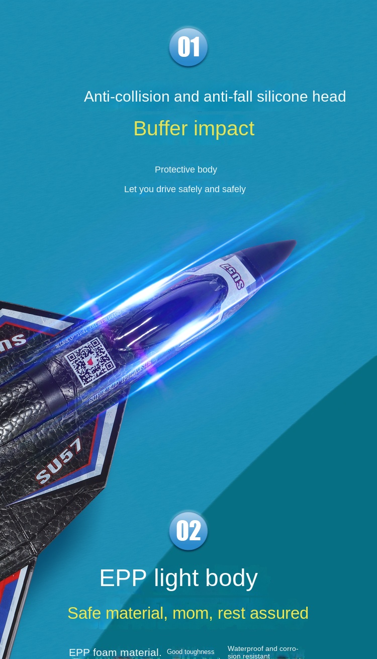 2. The plane uses ultra-tough EPP special foam material, which is flexible and resistant to falling.