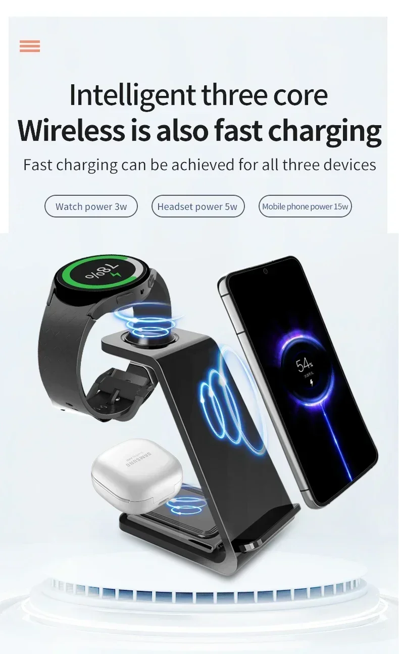 【Multi-Device Wireless Charging Station】3 IN1 Wireless Charger is specially designed to charge Samsung devices.